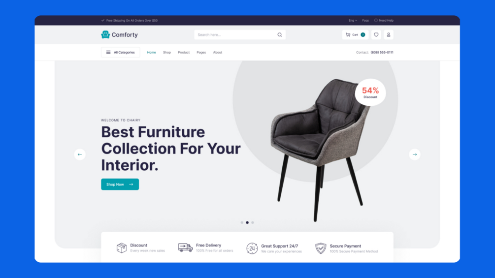 - Responsive Design: "Comforty" is fully responsive and mobile-friendly, ensuring your online store looks great and functions flawlessly on all devices.
