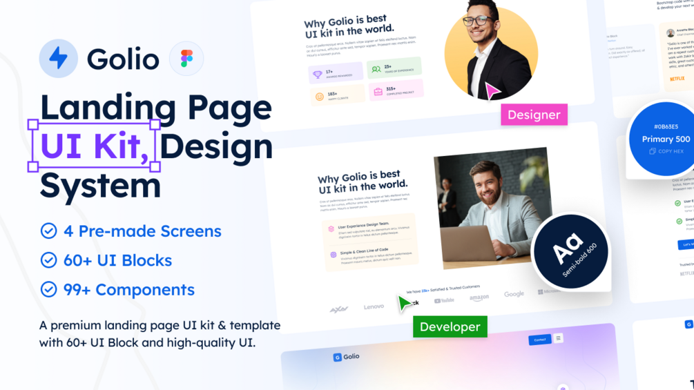 Golio - Free Landing Page UI Kit & Design System