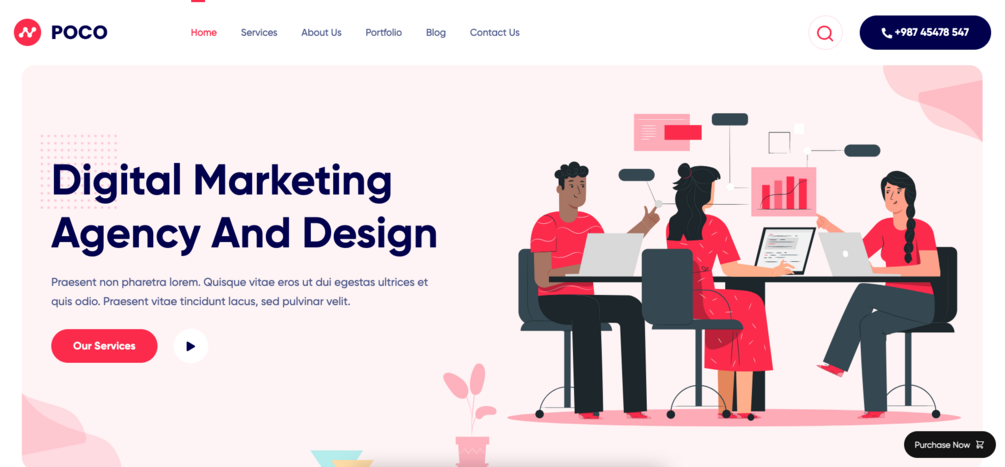 - Stunning Page Variations: Poco offers four unique page styles, each thoughtfully designed to exude creativity and professionalism, giving you the flexibility to choose a layout that best represents your agency's personality and goals.